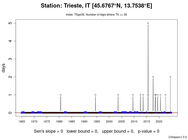 La estación meteorológica ubicada en la ciudad de Trieste, Italia, cuenta con datos diarios desde el año 1965 hasta el presente, lo que permite hacer un análisis de las tendencias climáticas históricas.